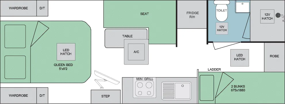 - 2 x LED Reading Lights in Lounge and 1 Per Bunk