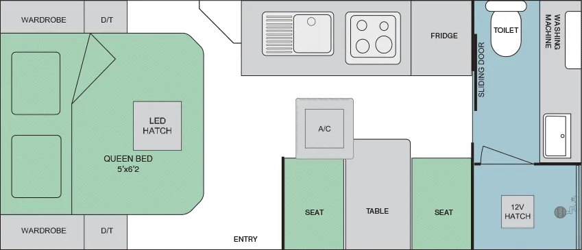 The impressive Stryker is a compact caravan that packs quite a spacious interior. Fitted with a queen bed, café Dinette configuration & full ensuite. Being an adventurous traveller doesn’t mean you can’t take the luxuries of home with you.