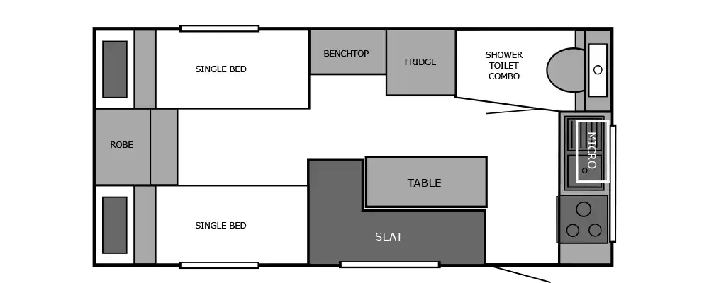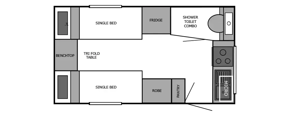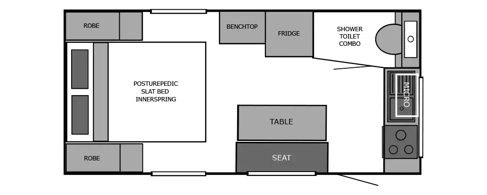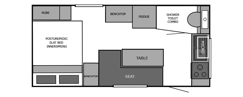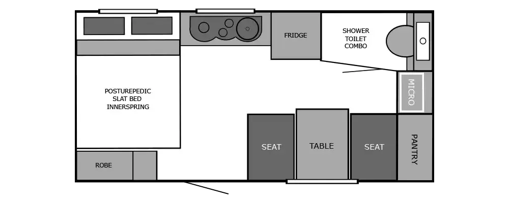 The Sprinter proudly carries the heritage of 45 years of Australian manufacturing, promising a durable and dependable travel companion. Its exterior features a tough aluminium composite roof and walls, providing a lightweight yet protective shell that is simple to maintain. Safe and easy setup is guaranteed with the standard reverse parking camera, making arrival a breeze.