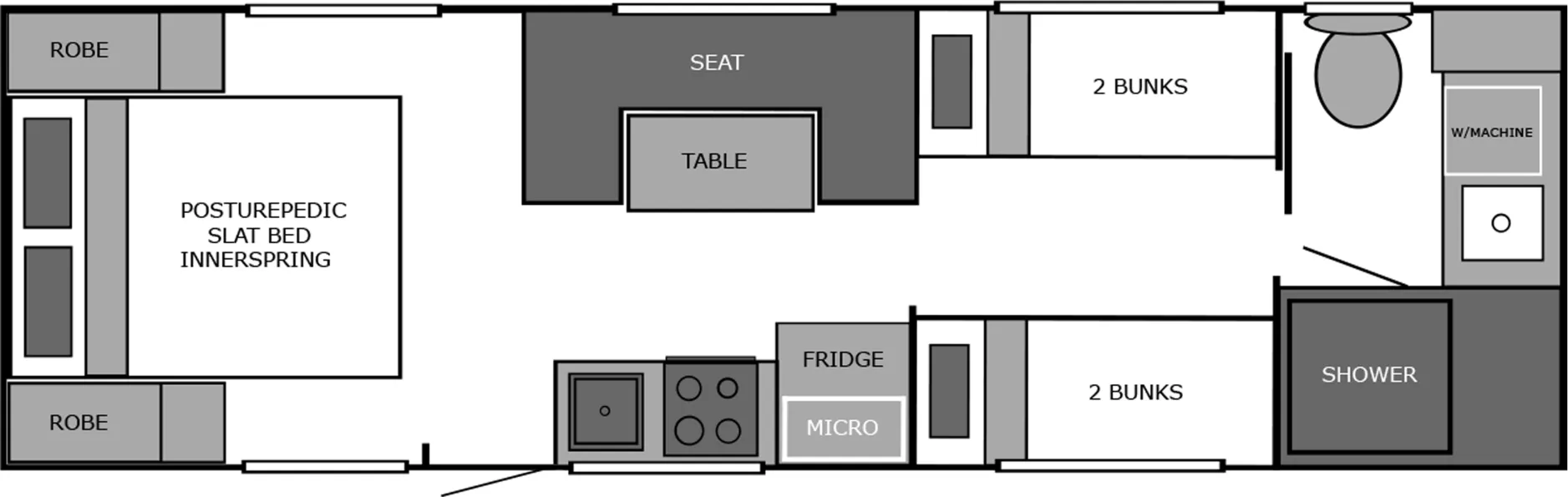 Step into the Adelaide to find an interior where modern style meets smart engineering. The foundation is a one-piece bonded floor, a construction choice that provides a solid base while remaining cost-effective. The galley boasts high-end appliances, perfectly complementing the sophisticated visual appeal of the waterfall benchtops.