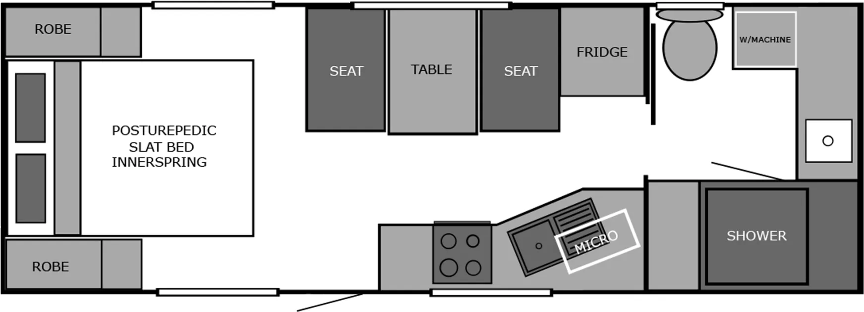 With an extra-large ensuite, a spacious kitchen, and a café-style dinette, this van is sure to surpass the expectations of every caravan enthusiast.